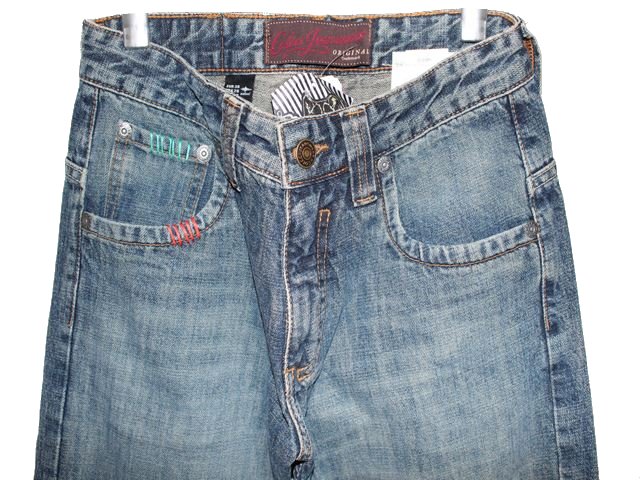 イタリアを中心にヨーロッパカジュアルブランド。ALL COTTONの意味でセンスの良いデザインをたくさん作っています。小さなたくさんのオレンジ色ストーン使用。スタイル(ブーツカット)。ローライズ、フロントジッパー。ポケット(大4小1)。 AGED DENIM SINCE1953 【クラシック 5ポケット ジーンズ】 ビンテージアルコットジーンズ